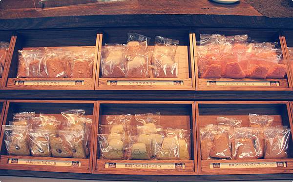 一走進店裡,架上陳列著許許多多剛出爐的餅乾;